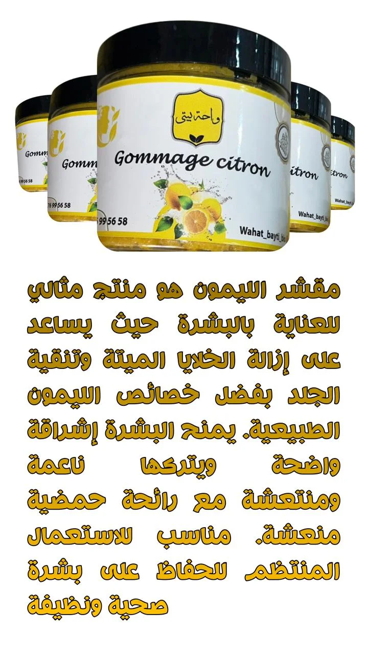 مقشر الليمون هو منتج عناية متكامل مصمم لتجديد البشرة وتنظيفها بعمق. بفضل تركيبته الغنية بمستخلصات الليمون الطبيعية، يعمل هذا المقشر على إزالة الخلايا الميتة والشوائب المتراكمة على سطح الجلد، مما يساعد على تحسين ملمس البشرة وتوحيد لونها. كما يساهم الليمون المعروف بخصائصه المنعشة والمنقية في منح البشرة إشراقة طبيعية ومظهراً صحياً. الاستخدام المنتظم لهذا المقشر يساعد على تنشيط البشرة، تنظيف المسام، وإعادة الحيوية للبشرة المتعبة. كما يترك إحساساً بالانتعاش مع رائحة ليمونية منعشة تجعل تجربة العناية بالبشرة أكثر متعة وراحة.