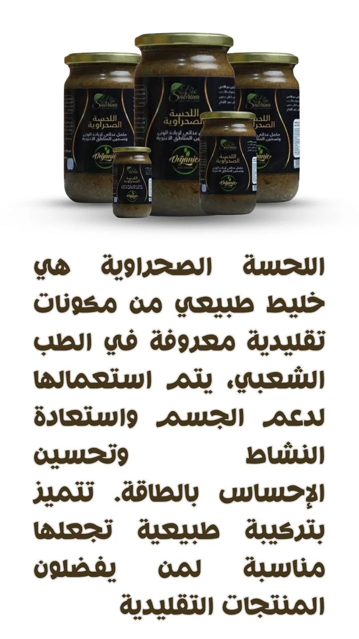 اللحسة الصحراوية هي منتج طبيعي مستوحى من الوصفات التقليدية المعروفة في الطب الشعبي، حيث يتم تحضيرها من مكونات مختارة بعناية للمساعدة في دعم الجسم وتعزيز النشاط والحيوية. تتميز هذه الخلطة بتركيبة غنية تساعد على تحسين الشعور بالقوة والراحة، كما أنها مناسبة للأشخاص الذين يفضلون الحلول الطبيعية في العناية بالصحة. بفضل مكوناتها الطبيعية وجودتها العالية، تعتبر اللبسة الصحراوية خياراً مميزاً لمن يبحث عن منتج تقليدي موثوق يساعد على استعادة التوازن والنشاط بطريقة آمنة وطبيعية.